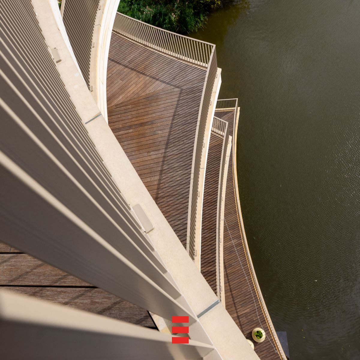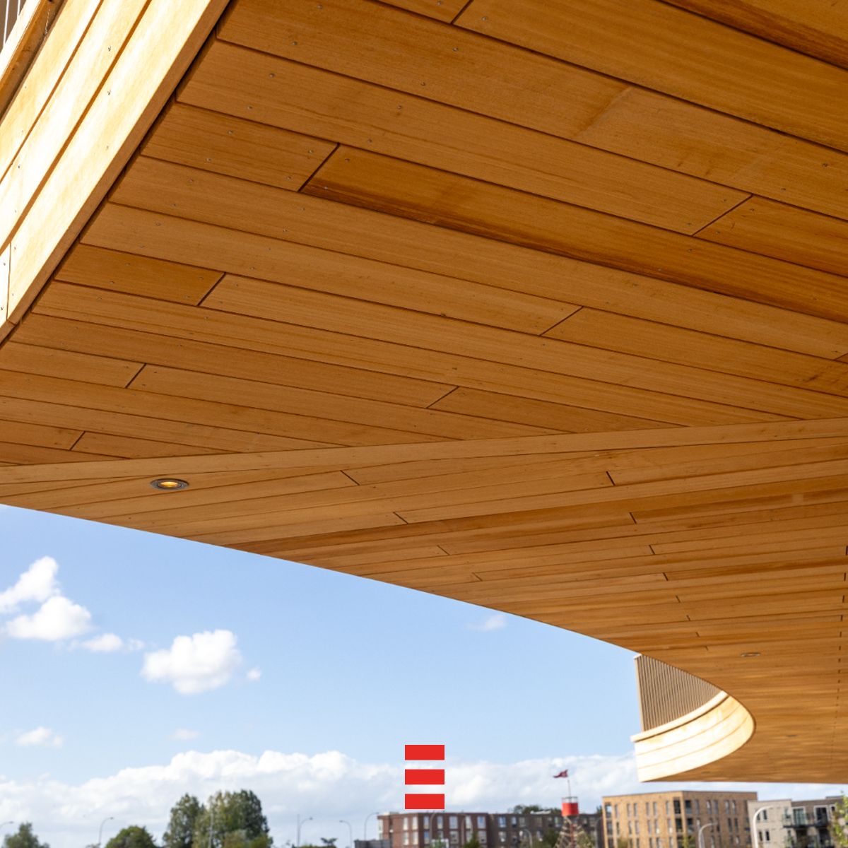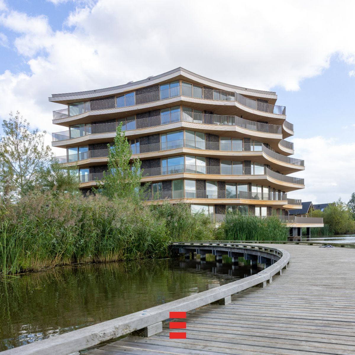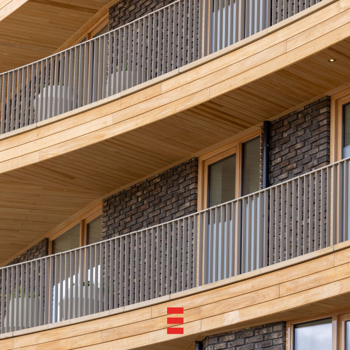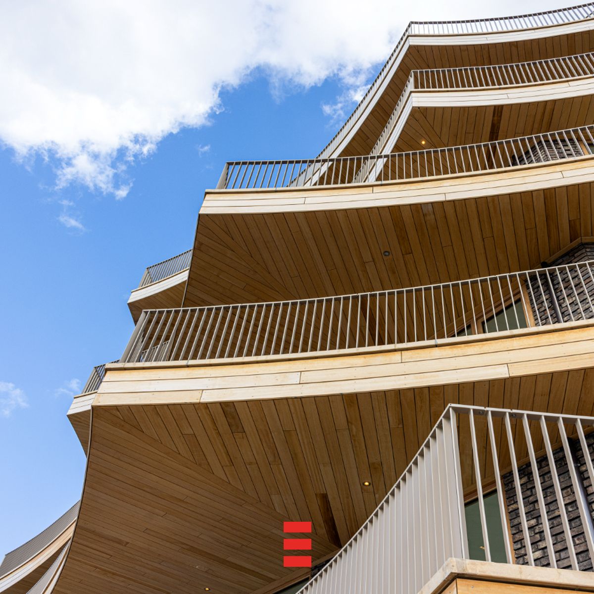 Voor het project De Juffer in Pijnacker is RED Building verantwoordelijk voor het leveren en monteren van de gevel- en plafondbekleding en de realisatie van een bamboe vlonder.